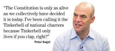 "The Constitution is only as alive as we collectively have decided it is today," Sagal told Gavin, adding, "I've been calling it the Tinkerbell of national charters because Tinkerbell only lives if you clap, right? Or if you say, 'I do believe in fairies, I do!'"