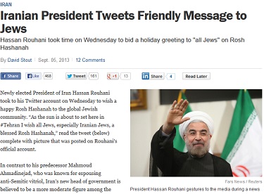 Time: Iranian President 'Proves His Moderate Stance' with Rosh Hashanah Twitter Greeting; Iran Says It's a Fake