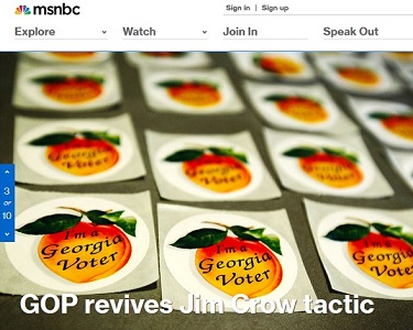 And so readers of the MSNBC.com website were greeted this morning with the teaser headline, "GOP revives Jim Crow tactic," which links to Zachary Roth's November 22 article, "Georgia GOP dusts off Jim Crow tactic: Changing election date."