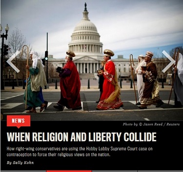 "To put it mildly, our forbearers [sic] would be appalled by how right-wing conservatives are trying to use government to force their religious views on all of us. Make no mistake, this is what Hobby Lobby wants to do—use government to push a conservative religious agenda, " Kohn groused this morning in "When Religion and Liberty Collide":