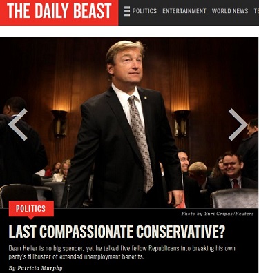 Daily Beast political writer Patricia Murphy dutifully peddled Democratic spin on the economy and unemployment while singing the praises of Nevada Republican Senator Dean Heller who led a breakaway contingent of fellow GOPers to invoke cloture on a Democratic bill to extend unemployment benefits without any offsetting spending cuts.