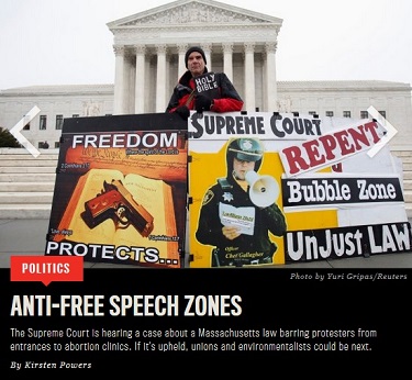 Yesterday the Supreme Court heard a case, McCullen v. Coakley, which calls into question a Massachusetts law which establishes a speech-free-zone extending 35 feet from the entrance to an abortion clinic. That law provides, however, an exemption for the speech of employees or agents of said abortion clinics, effectively serving as restriction on speech which is NOT content-neutral.