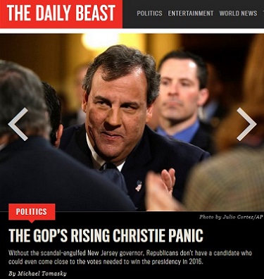 "Without the scandal-engulfed New Jersey governor, Republicans don’t have a candidate who could even come close to the votes needed to win the presidency in 2016," promises the subheader to the left-wing journalist's story. Tomasky made no effort to rise above his naked partisanship nor the smug self-satisfaction of his prognostication of certain electoral doom for the GOP two years from now (emphasis mine):