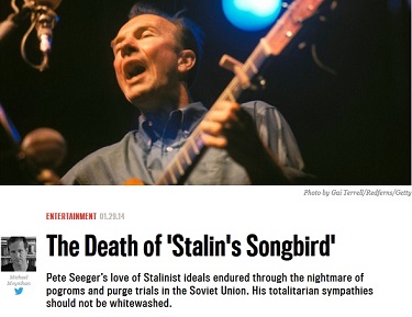 "[I]t’s important to remember that [Pete] Seeger, once an avowed Stalinist, was a political singer devoted to a sinister political system--a position he held long after the Soviet experiment drenched itself in blood and collapsed in ignominy."