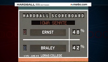 But new polling suggests the Democrats may have a hard time in a state they expected to win, Iowa. Let's check the Hardball scoreboard.