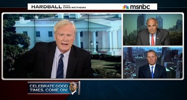 Moments earlier, Matthews criticized President Obama for not being a confident, assertive salesman of his economic management before offering his somewhat conspiratorial view of Republican businessmen sit around trash-talking the economy to justify "their chicken behavior in terms of investment" (emphasis mine):