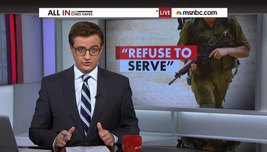 MSNBC All In host Chris Hayes -- who once infamously felt "uncomfortable" calling American servicemen "heroes" -- complimented as "gutsy" one Yael Even Or, an Israeli reservist who explained in a Washington Post op-ed why she refuses to serve in Israel's military operation in the Gaza Strip should she be called up for service.