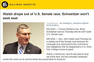 Here's an excerpt of how the Billings [Mont.] Gazette's Charles Johnson broke the Walsh story this afternoon: