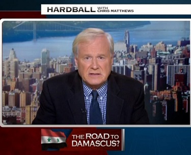 Tonight a frustrated Matthews expressed his frustration with Mr. Obama once again, asking his guests Bobby Ghosh and Howard Fineman why the president didn't couch the U.S. response to the bloodthirsty Islamist terrorists as a defense of American honor. Why, Matthews wondered, did Obama stick to business as usual "playing golf last week when he had the American people's attention?" Why doesn't Obama "fight like a street fighter when it comes to defending the lives of Americans"? The relevant transcript appears below the page break (emphais mine; MP3 audio here; video follows page break):