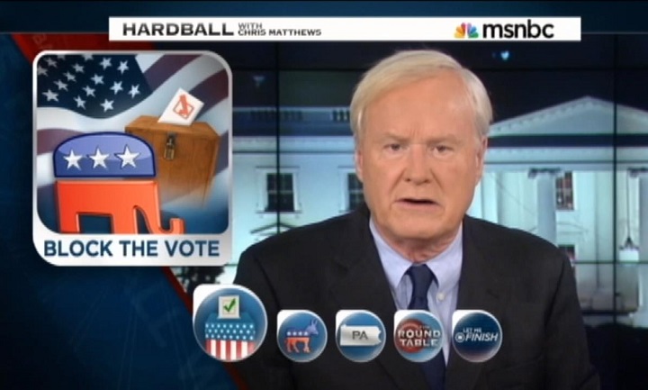 Instead, Matthews and his liberal guests spent the lion's share of the program blasting the GOP as racist for pursuing voter ID laws. Here's just a taste of Matthews's invective, the transcript of his opening commentary: