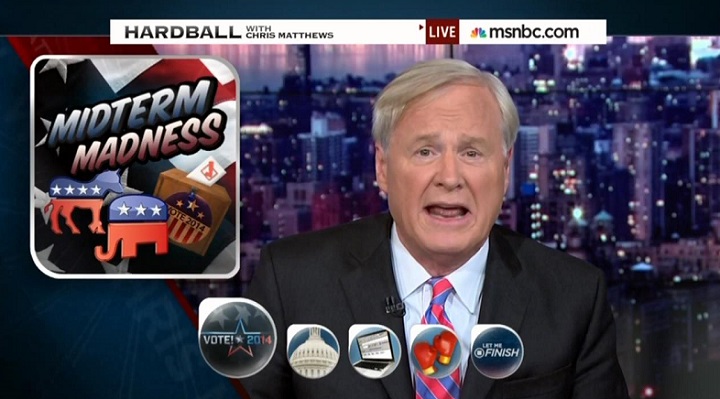 Matthews, you may recall, has long been obsessed with Republican Senate candidate Joni Ernst's ad in which she mentions how she castrated hogs on the farm where she grew up. Perhaps Matthews had that ad in the back of its mind as it helped catapult Ernst from obscurity in a crowded primary race and, on this first Monday in November, very well on the cusp of punching her ticket to the United States Senate.