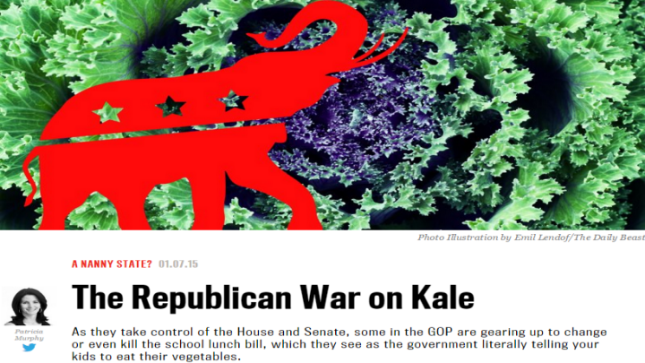 "Obama agenda, meet the wrecking ball," the Daily Beast's Patricia Murphy groused as she opened her January 7 piece, "The Republican War on Kale." Murphy took issue with Senate Republicans setting their sights on a wildly unpopular element of the Obama agenda: the federal overhaul of school-lunch programs all over the country.