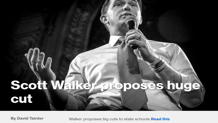 With Scott Walker entertaining a run for president in 2016, you can expect MSNBC to amp up their criticism of the Wisconsin governor. Enter msnbc.com homepage editor and University of Wisconsin, Eau Claire alumnus David Taintor today hitting Walker for proposing a "huge cut" in taxpayer financing of the University of Wisconsin system: