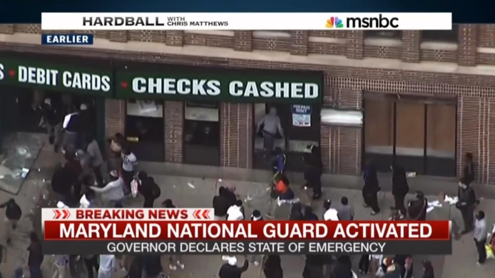 Matthews made the remark tonight while discussing the riots with NBC News reporter Brian Mooar, who was reporting via telephone from Baltimore. Here's the relevant transcript: