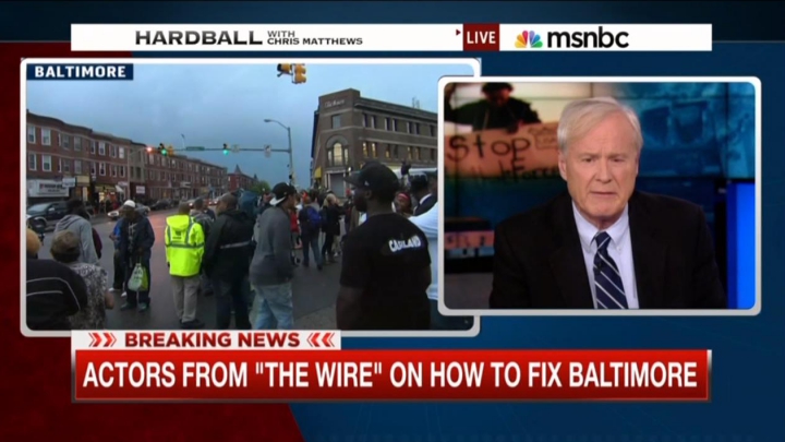 During a segment with African-American actors best known for their role on HBO's The Wire, Matthews asked Gbenga Akinnagbe for his thoughts on why black Democratic politicians had so little to show for their years of loyalty to the party. Did the Congressional Black Caucus, for example, need to "crack the whip" when it came to pushing its agenda for improving America's inner-city black communities like Baltimore's.