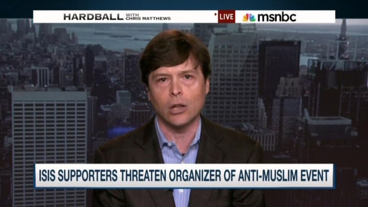 MSNBC terrorism expert Evan Kohlmann insisted on tonight's Hardball program that Pam Geller was dangerously close to committing "hate crimes" with her "draw Muhammad" events. Kohlmann also compared the Jewish co-founder of the American Freedom Defense Initiative (AFDI) to the Nazis by way of invoking the Reichstag fire that the Nazis set as in February 1933 as a pretext to seizing power.