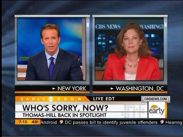 [ON-SCREEN HEADLINE: Who's Sorry Now?; Thomas-Hill Back in Spotlight]