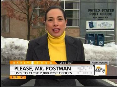 [ON-SCREEN HEADLINE: Please, Mr. Postman; USPS to Close 2,000 Post Offices]