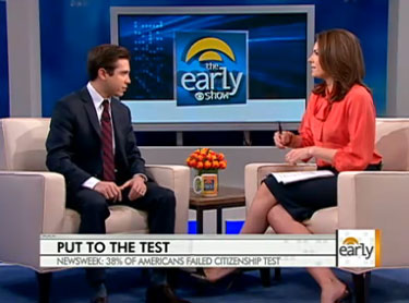 Appearing on Tuesday's CBS Early Show, Newsweek senior writer Andrew Romano touted a survey in the magazine's latest issue showing that 38% of Americans failed the U.S. citizenship test and claimed to know the cause: "One of the big ones is income inequality in the United States. We're one of the most in-equal societies in the developed world."