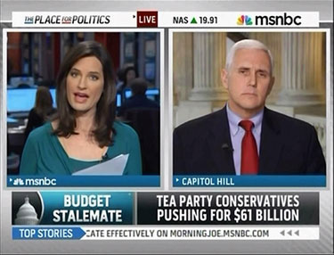 Near the end of the interview, Brewer wondered if Republicans were prepared for the "consequences" of a government shutdown. Pence replied: "I think if liberals in the Senate are unwilling to embrace even this modest step toward fiscal discipline in Washington, D.C., then I say shut it down." Brewer proclaimed: "Congressman, the last time it shut down, 800,000 federal workers got furloughed. The OMB said it cost more than $1.25 billion in 1995 when Newt Gingrich led a government shutdown. Those furloughed workers go home. They don't get paychecks. But you do."