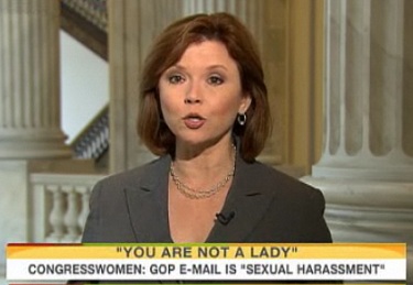[ON-SCREEN HEADLINE: "You Are Not a Lady"; Congresswomen: GOP E-mail is "Sexual Harassment"]