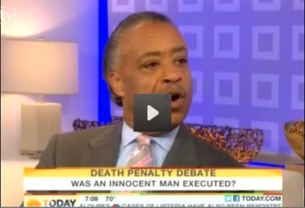 Throughout the segment, Lauer teed up Sharpton with one softball question after another, starting with: "Did the state of Georgia execute an innocent man?" After Sharpton declared that to be the case, Lauer followed up by quoting a blog post the Reverend had written calling for a new trial. Sharpton proclaimed: "If you have a man who's convicted, Matt, only on eyewitness testimony, there's no physical evidence, no DNA, how do you execute him when they recant their testimony?"