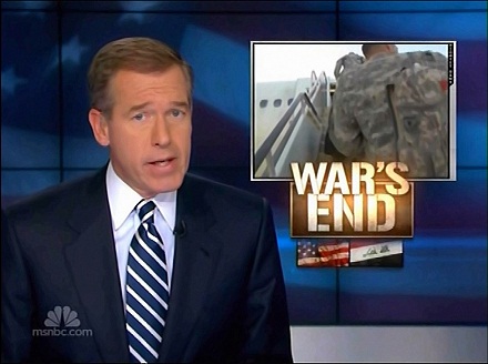 At the top of Thursday's NBC Nightly News, anchor Brian Williams sadly declared: "At a ceremony in Baghdad today, the Americans lowered the flag and it was a quiet ending to a war that went bad not long after its spectacular start." While Williams stressed the "high cost" of the war, citing figures of dead and wounded, the report that followed ignored accomplishments in the conflict.