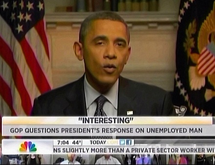 [ON-SCREEN HEADLINE: "Interesting"; GOP Questions President's Response on Unemployed Man]