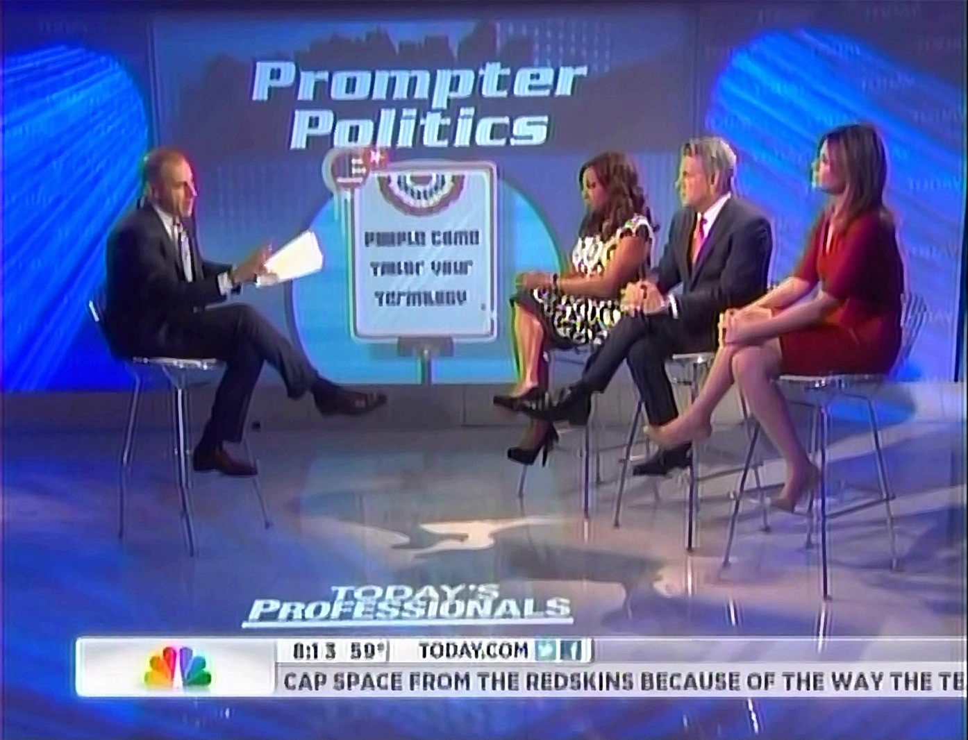 MATT LAUER: This weekend at a campaign appearance, Rick Santorum, one of the GOP presidential candidates, said he would like to see – and I'm paraphrasing here – it to be illegal for anyone running for president to use a Teleprompter. Basically, saying that if you're running for president, people should hear your words, not words that have been run through a focus group or written by someone else. How do we feel about this?