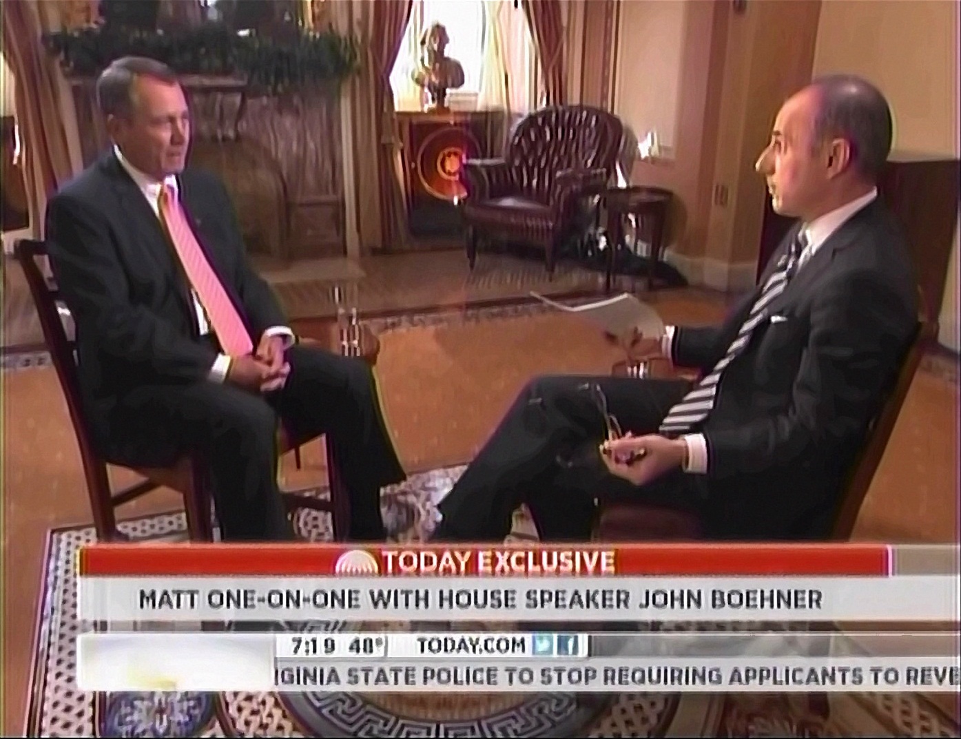 LAUER: Now our exclusive interview with House Speaker John Boehner. We sat down on Tuesday to discuss a wide range of topics, including the state of the economic recovery, and the GOP presidential race. Mr. Speaker, it's good to see you.