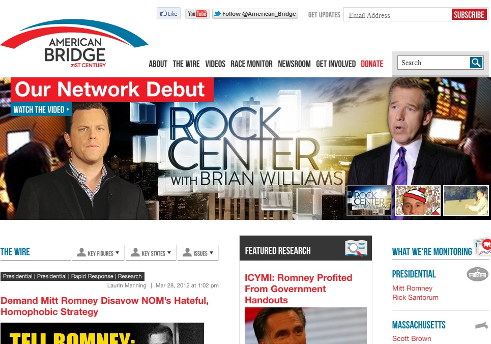 On its website, American Bridge 21st proudly touted the Rock Center story as "Our Network Debut" and encouraged visitors to "Watch the Video."