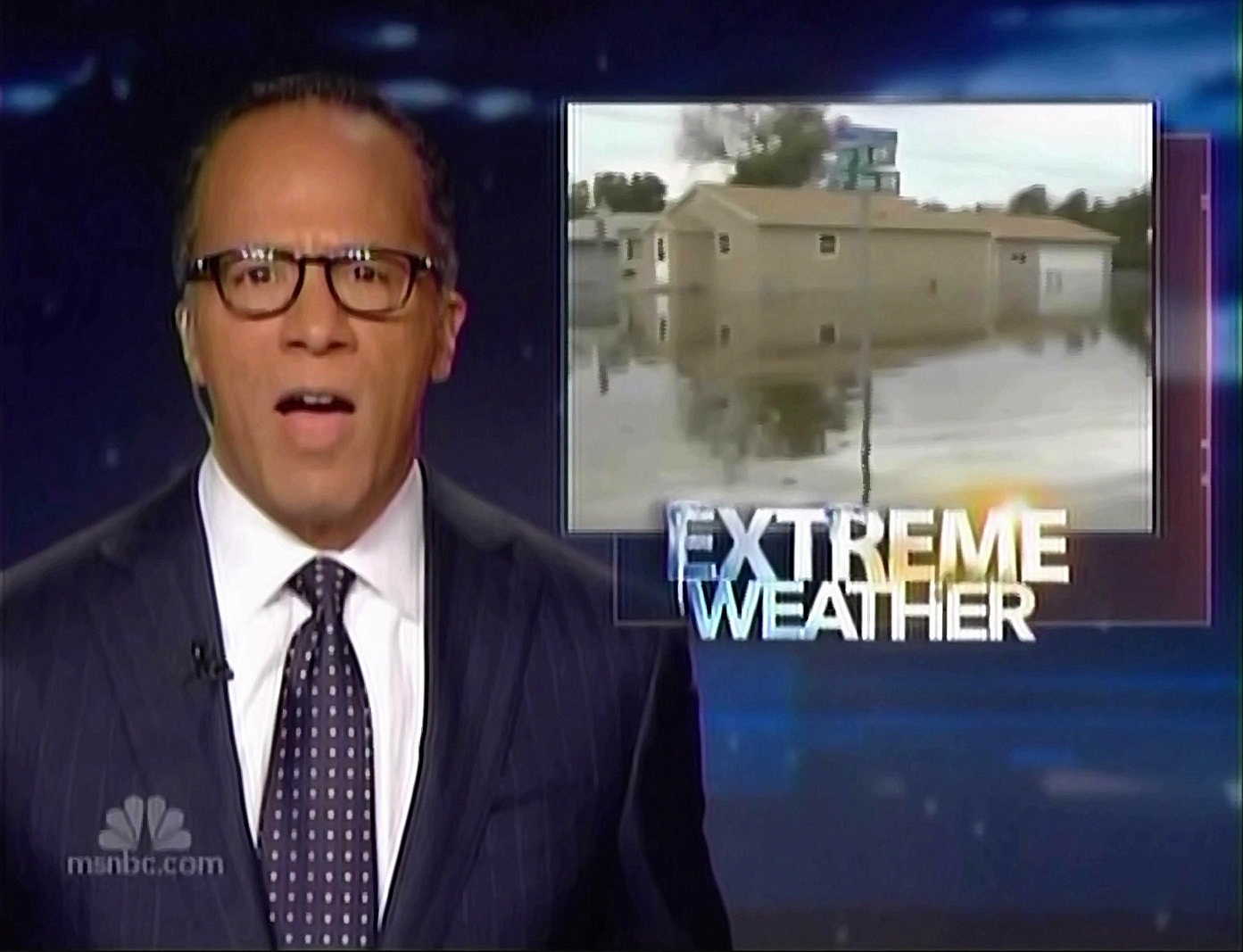 At the top of Saturday's NBC Nightly News, anchor Lester Holt scared viewers with an ominous declaration: "Disaster warning. Scientists sound the alarm. If you think this season's wild weather is extreme, wait until you hear what's to come." Introducing the later report, Holt wondered: "...what has been causing all this strange and extreme weather we've been seeing in recent months?"