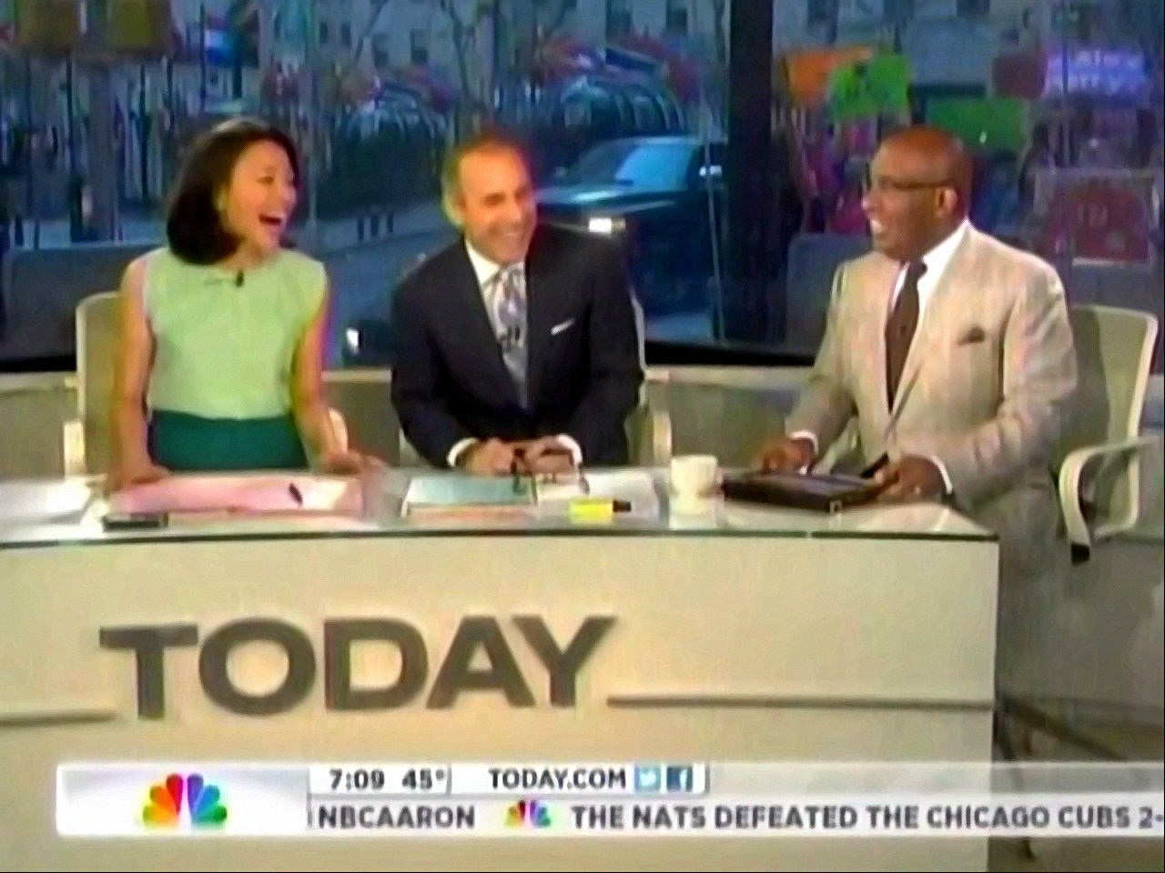 Lauer quipped in response: "You made out alright, didn't you?" Ann Curry referred to Olbermann suing his former employer, Current TV: "Yeah, and our bosses don't want to be sued." A relieved Roker proclaimed "Thank goodness!" and rounded out the mocking of the left-wing bomb-thrower by doing his best Olbermann impression: "You're the worst person in the world!"
