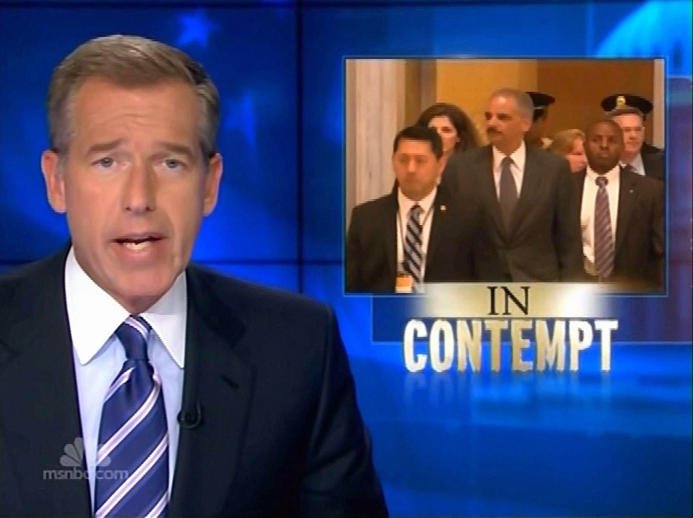 Leading off Wednesday's NBC Nightly News, anchor Brian Williams could barely conceal his contempt for Attorney General Eric Holder being held in contempt by the House Government Oversight Committee: "Washington has blown up into a caustic partisan fight....And for those not following the complexities of all of it, it just looks like more of our broken politics and vicious fights now out in the open."