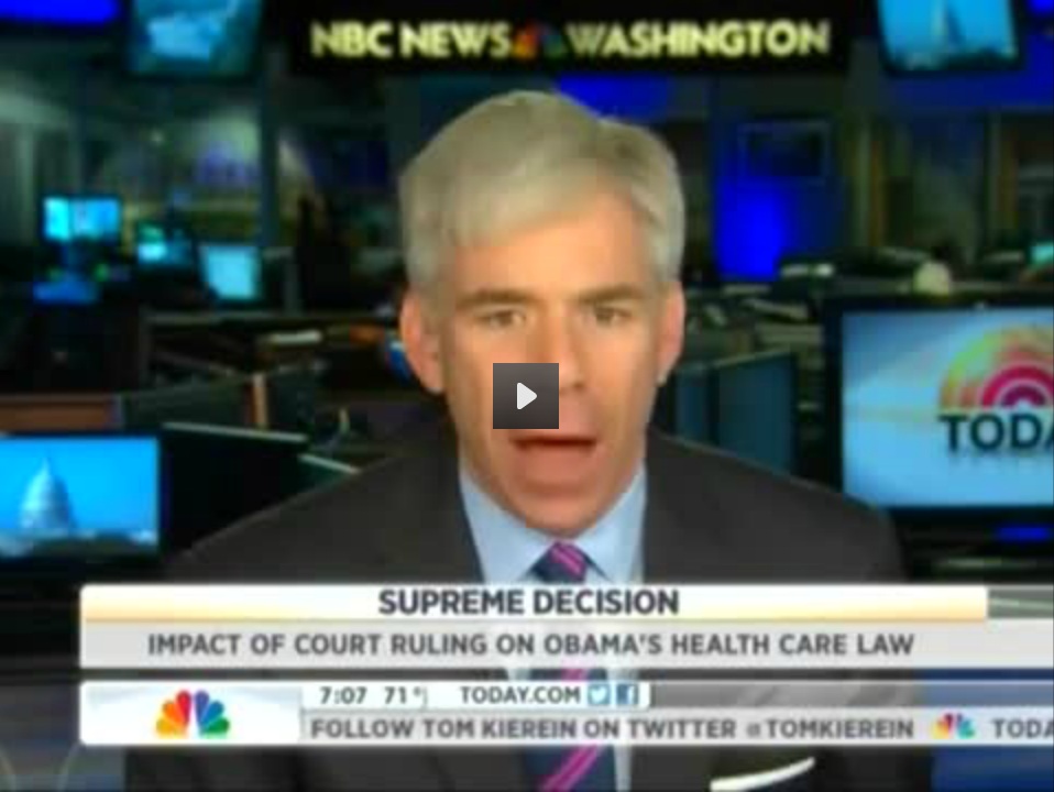 Meet the Press host David Gregory displayed a stunning double standard throughout NBC's Thursday morning coverage of the Supreme Court ruling on ObamaCare. Prior to the decision, he warned of a "nightmare scenario" if the law was struck down. Hours later, following the Court upholding the law, Gregory cheered Chief Justice John Roberts for taking "a big step here" to keep the Court from being "too polarized." [Listen to the audio or watch the video after the jump]
