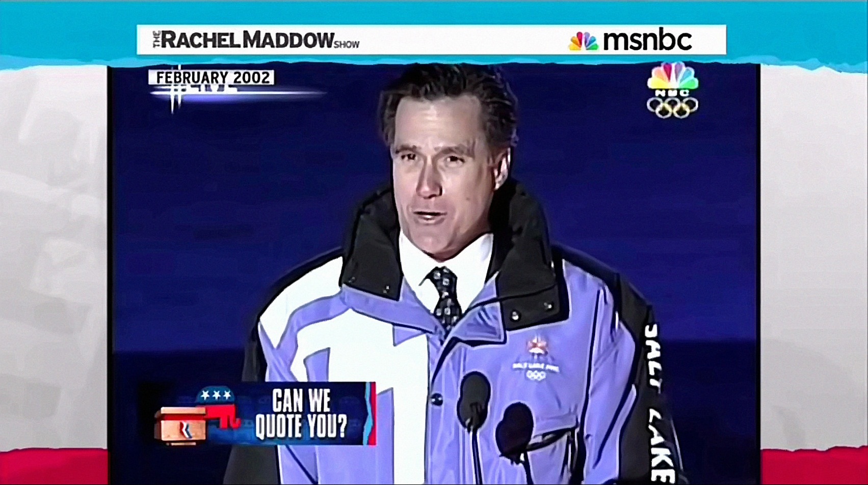 On MSNBC's The Daily Rundown on Tuesday, host and NBC News political director Chuck Todd also seized on Romney's 2002 comments to run defense for the Obama campaign: "Well, the Romney campaign and conservatives have panned the President's, quote, 'It takes a village' argument. But the attack has its own complexities. There's that clip of Romney in 2002, reminding Olympians during a speech at the opening ceremonies that they didn't get their on their own."