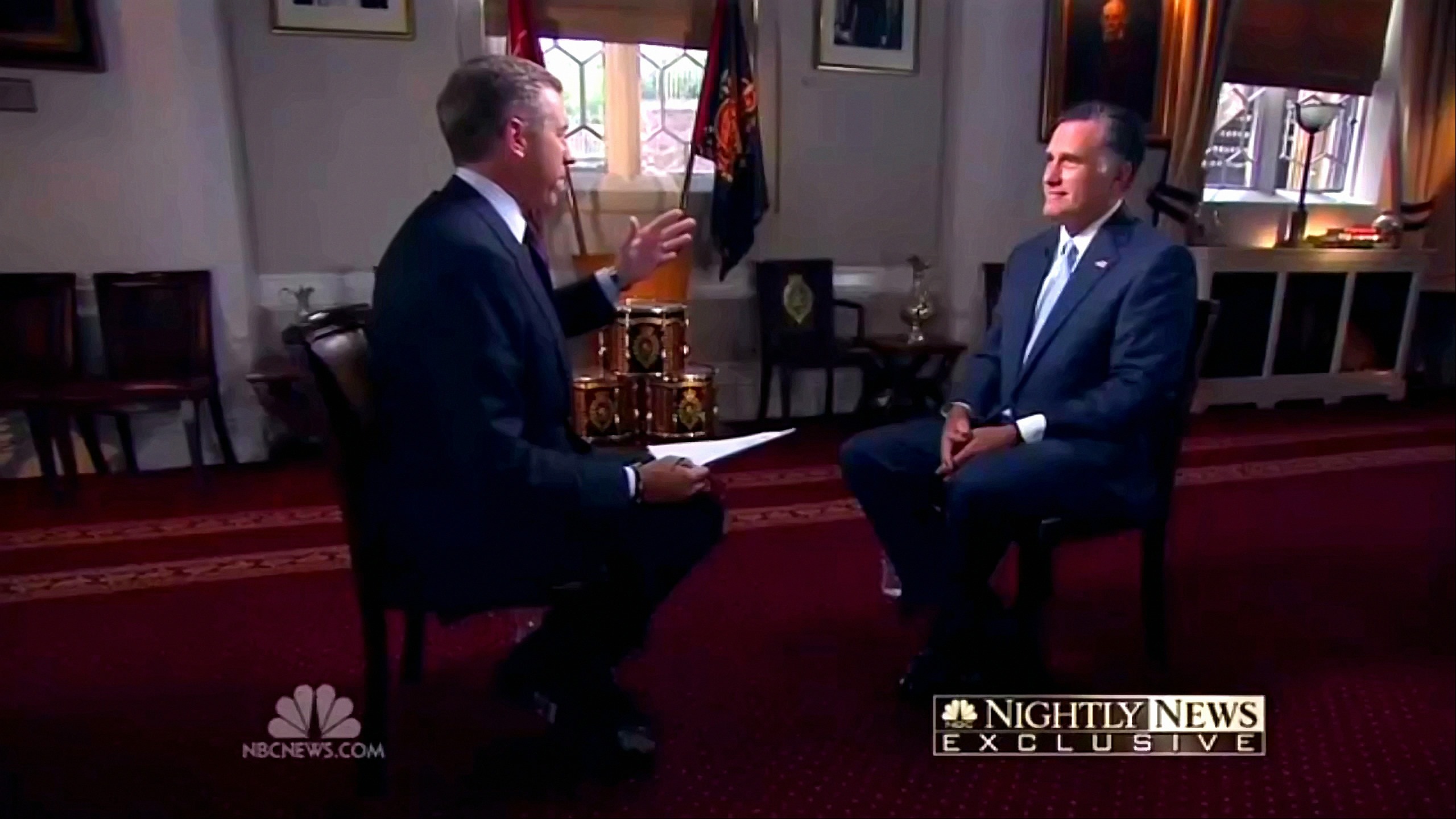 BRIAN WILLIAMS: An NBC News exclusive. Here in London today, our conversation with Mitt Romney about gun rights, religion, taxes and whether American voters really truly know who he is.