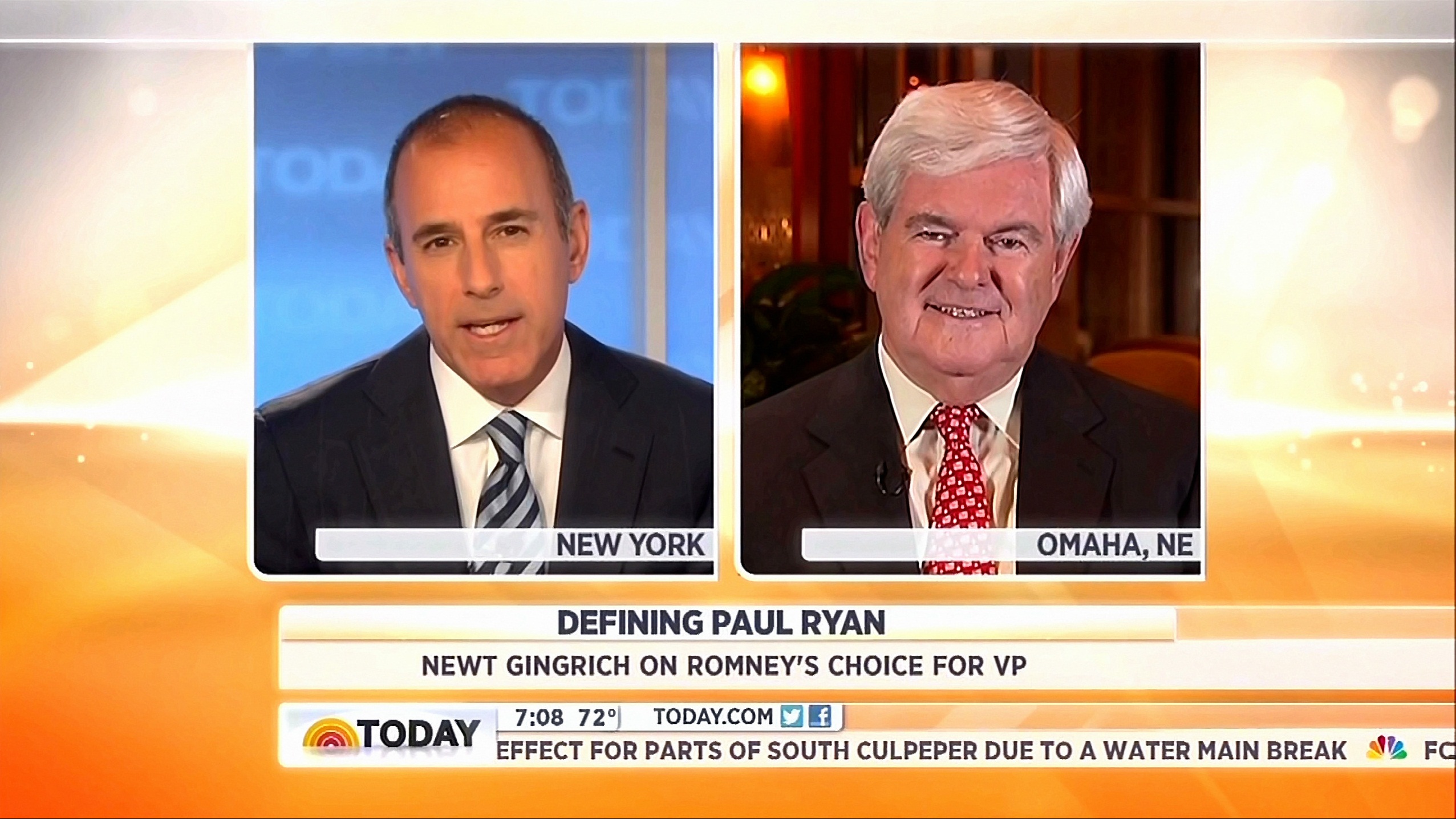 MATT LAUER: Newt Gingrich is the former speaker of the House and one-time favorite in the GOP presidential race. Speaker Gingrich, good to see you.