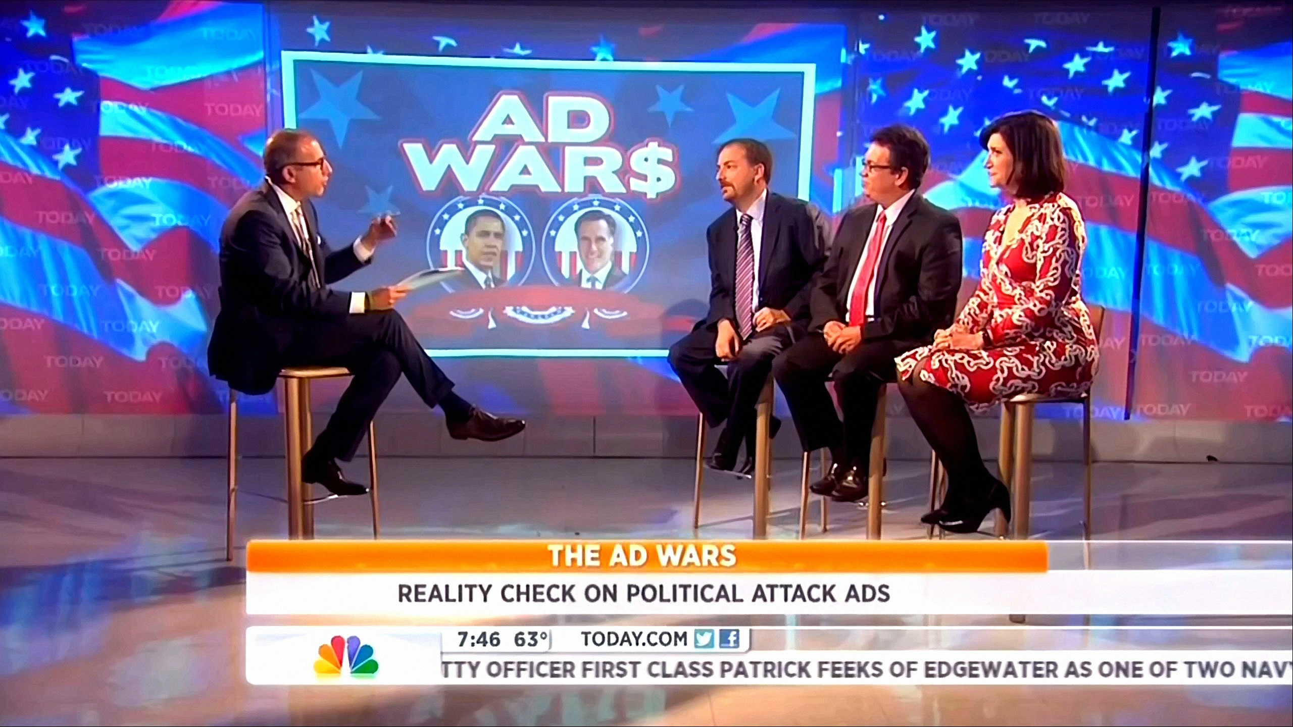 MATT LAUER: With the ad war well underway in the presidential race, spending has already crossed the $500 million mark and election day still more than two months away. So should you believe everything you see? Here with a reality check, Chuck Todd, NBC's political director and chief White House correspondent. Bill Adair, editor of Politifact. And ad critic Barbara Lippert. Good morning to all of you. Good to see you.