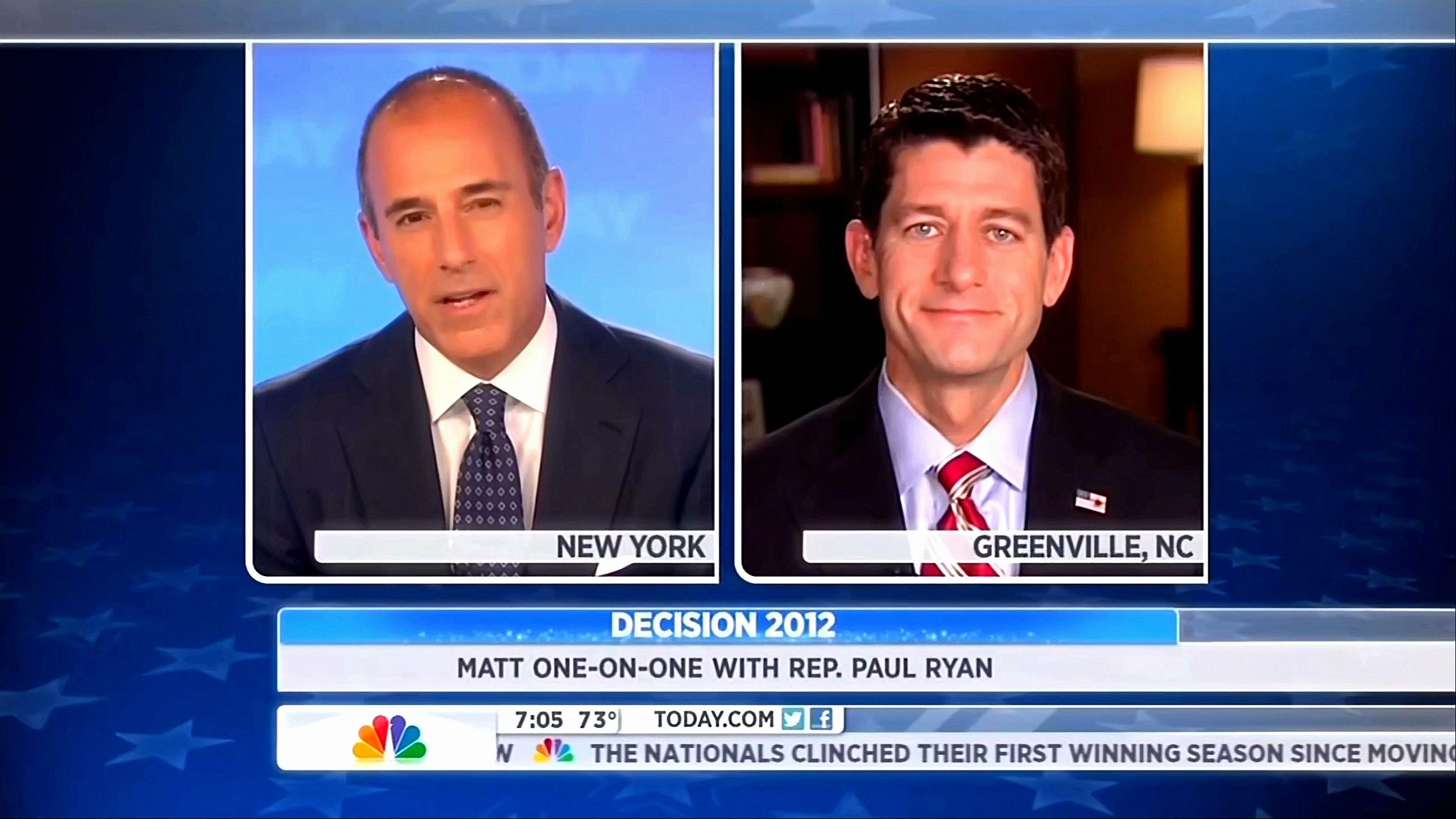 LAUER: Congressman Paul Ryan, the vice presidential candidate on the Republican side. Congressman, it's nice of you to spend time with us this morning.