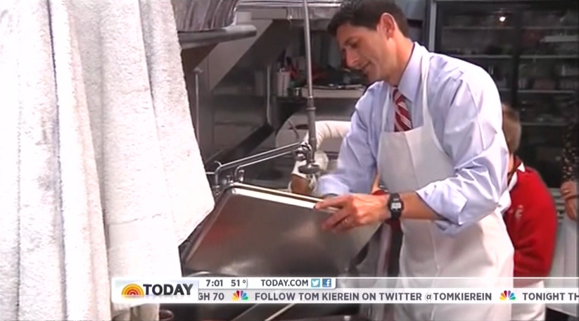 MATT LAUER: We all know that campaigns are about creating images. Well, some people are paying attention to this image right here, that's Paul Ryan, he was washing dishes at a soup kitchen in Ohio over the weekend. But now the charity's president says the dishes that he was washing were already clean. Would a campaign do that? We're gonna talk about it.
