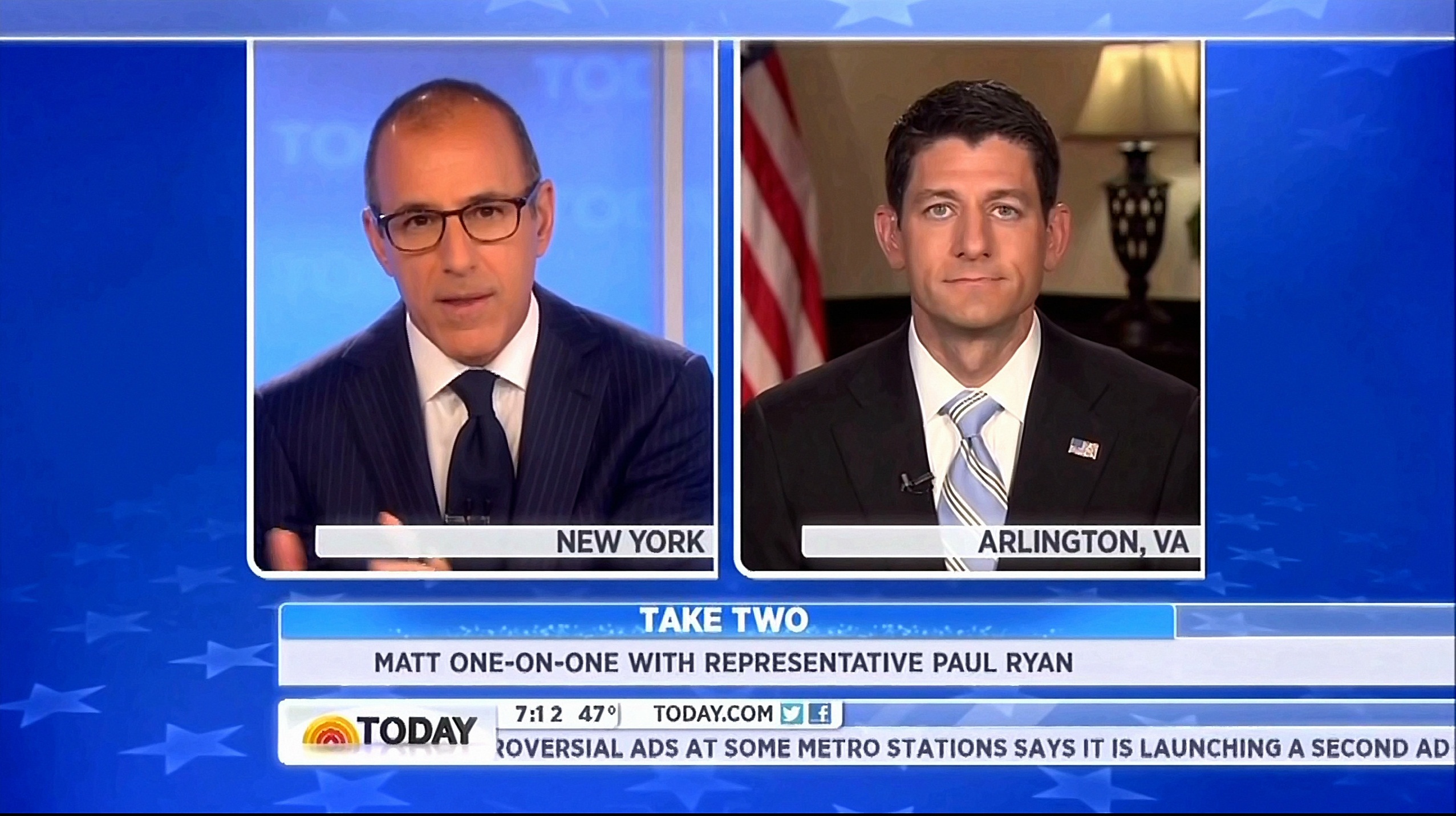 After Ryan pushed back, Lauer pressed him to agree that both presidential campaigns had poor responses: "Weren't both sides, Congressman, guilty of a rush to judgment on this story?...weren't both sides guilty of a rush to judgment in the immediate aftermath of that attack?"