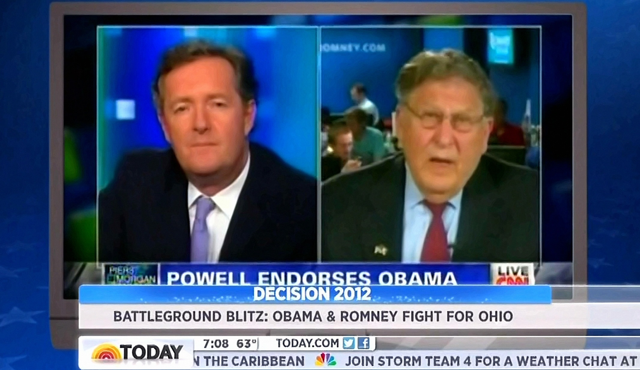Now, overnight the Romney campaign had John Sununu release a statement on what he said about Colin Powell. Let me read it to you, Matt. "Colin Powell is a friend and I respect the endorsement decision he made, and I do not doubt that it was based on anything but his support of the President's policies. Piers Morgan's question was whether Colin Powell should leave the party and I don't think he should." Well, Matt, I don't quite think that's exactly the way the question was, and it certainly wasn't an apology for how he worded that analysis. But I'm sure it'll be – we'll hear more about it today.
