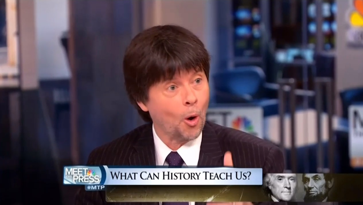 During a discussion of the new film Lincoln on Sunday's NBC Meet the Press, documentary film maker Ken Burns ranted about one of the supposed lessons he took away from the movie: "Race is always there in America....Do you think we'd have a secession movement in Texas and the other places, faddish secession movement, if this president wasn't African-American? Do you think the vitriol that came out of some elements of the Tea Party would have been at the same level had this President not been Africa-American?" [Listen to the audio or watch the video after the jump]