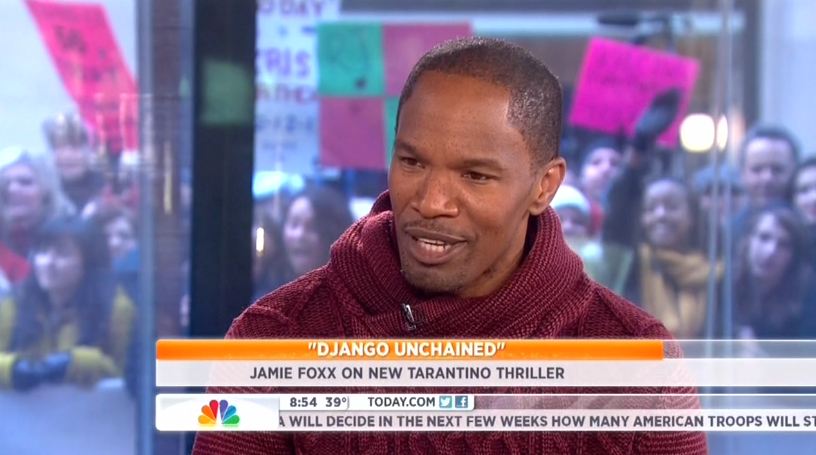 In an interview with actor Jamie Foxx on Wednesday's NBC Today about his upcoming movie Django Unchained, co-host Savannah Guthrie brought up offensive comments Foxx made while hosting Saturday Night Live: "You said your character gets to, quote, 'kill all the white people,' adding, 'how great is that?' I know you know about the criticism, do you think it was fair?" [Listen to the audio or watch the video after the jump]