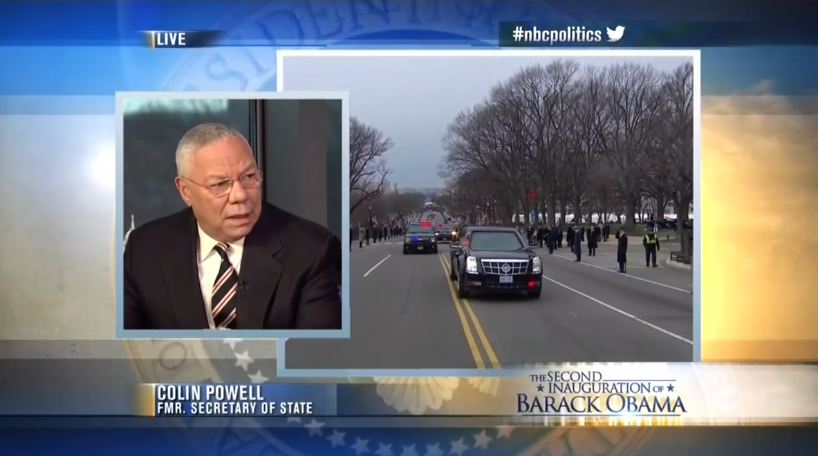 In an exchange with former Secretary of State and prominent Obama supporter Colin Powell during NBC's live inauguration coverage on Monday, NBC Nightly News anchor Brian Williams urged Powell to go after Republicans: "General, there's just flat-out hatred out there, too. There's nastiness out there in the land. There's nastiness between these two parties....Let's especially go to the Republican Party....What do they do to widen, if it is in their interest, widen their doorway to membership, to entry?" [Listen to the audio or watch the video after the jump]