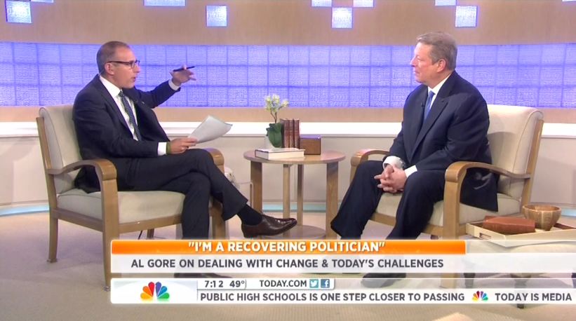 When Lauer questioned Gore about selling Current to Al Jazeera for $500 million, Gore declared: "I'm very pleased that Al Jazeera has established itself as a really respected news-gathering network." Rather than challenge that assertion, the only criticism of the network Lauer could think of was this: "But if they get funding from a country that has – that bases its wealth on fossil fuels, and fossil fuels are the enemy you target in climate change, isn't there a bit of hypocrisy in that?"