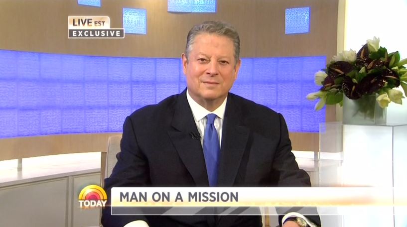 Gore was repeatedly flattered throughout his Today show appearance. At the top of the show, co-host Savannah Guthrie heralded: "Man on a mission. Former Vice President Al Gore on the highs and lows of his political and personal life, the debates raging in Washington, and the very future of our planet."