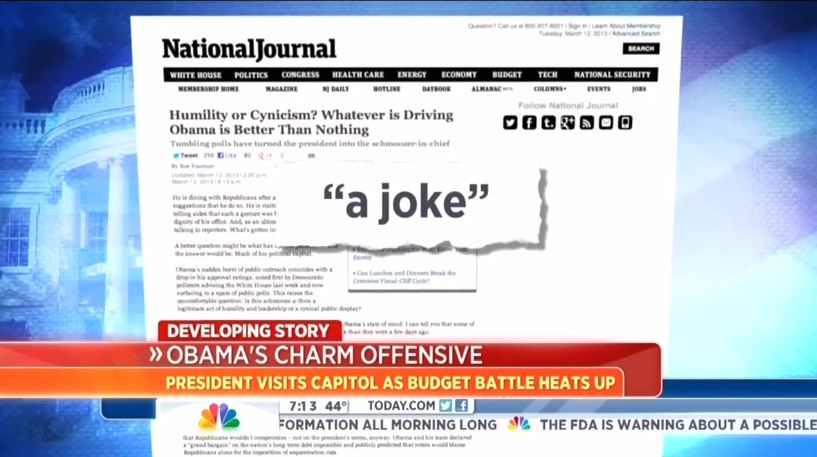 In a National Journal article posted Tuesday morning, Ron Fournier recounted: "'This is a joke. We're wasting the president's time and ours,' complained a senior White House official who was promised anonymity so he could speak frankly. 'I hope you all (in the media) are happy because we're doing it for you.'"