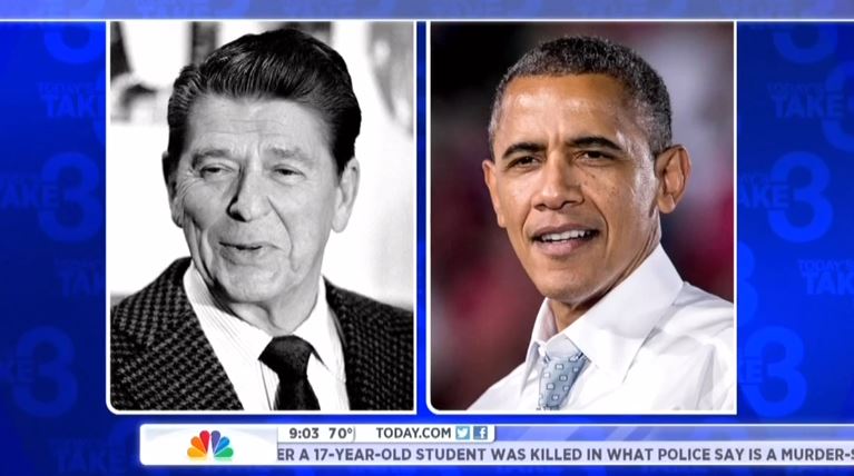 Geist started Tuesday's Today segment by citing another finding from the survey that suggested why Americans would support Reagan over Obama: "Three in four Americans today thought our country was better off in the '80s than it is now. Three in four." News reader Natalie Morales chimed in: "I'd agree."
